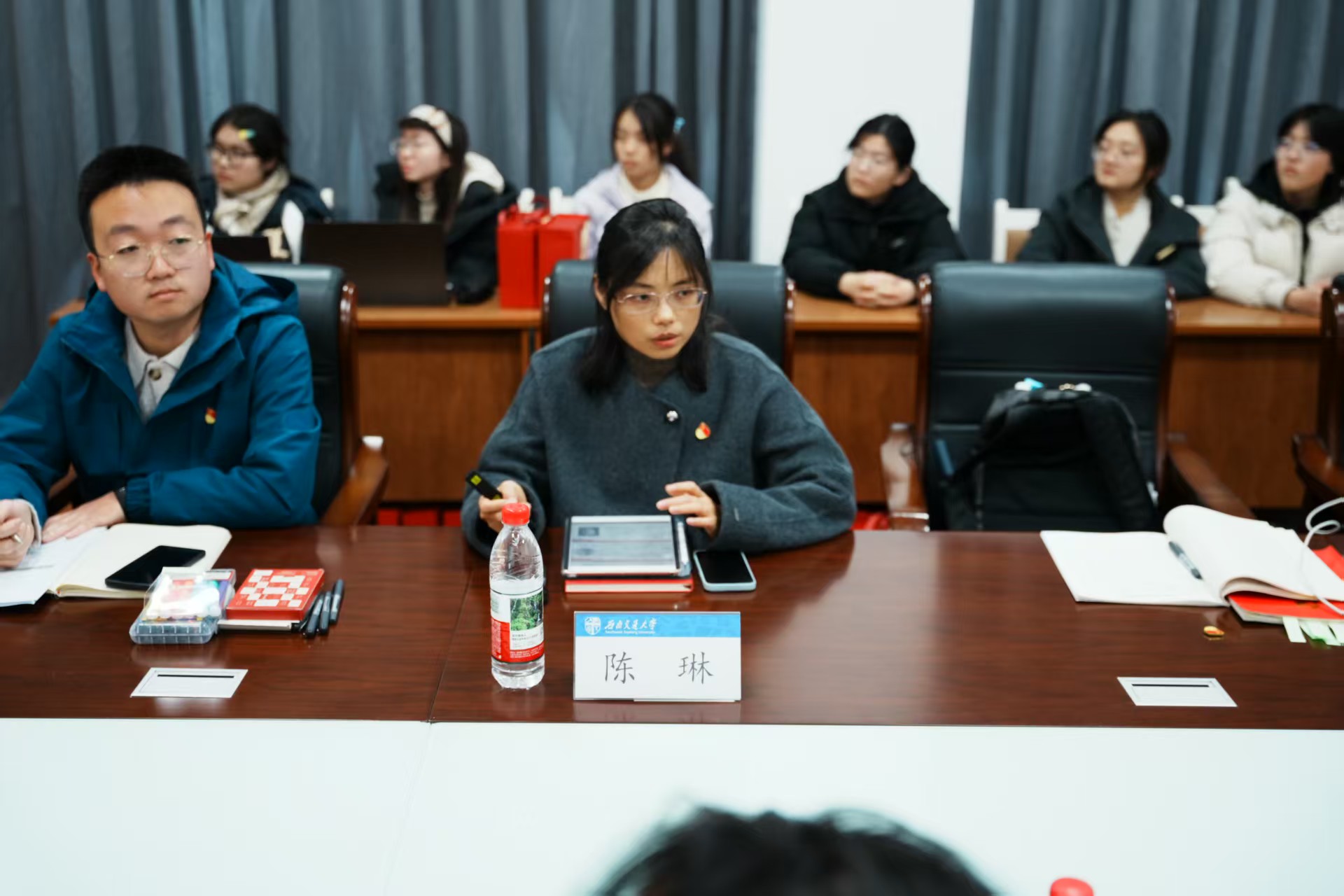 会议首先由陈琳同志讲授专题党课。她以 “交大五老” 事迹为切入点,系统讲解罗忠忱等五位教授的育人初心与治学坚守,深入阐释 “严谨治学、严格要求” 的双严传统,引导党员传承先辈精神、筑牢思想根基;随后结合校园考试违纪典型案例,领学学校考试管理及纪律处分相关规定,明确考试作弊的危害与处分标准,深刻剖析违纪行为对个人发展和组织形象的负面影响,强调青年党员需严守纪律底线,让规则意识成为成长成才的坚实保障。党课结束后,支部书记金鹏帆带领大家学习《党的二十届四中全会〈建议〉学习辅导百问》,进一步强化党员的时代担当与使命意识。