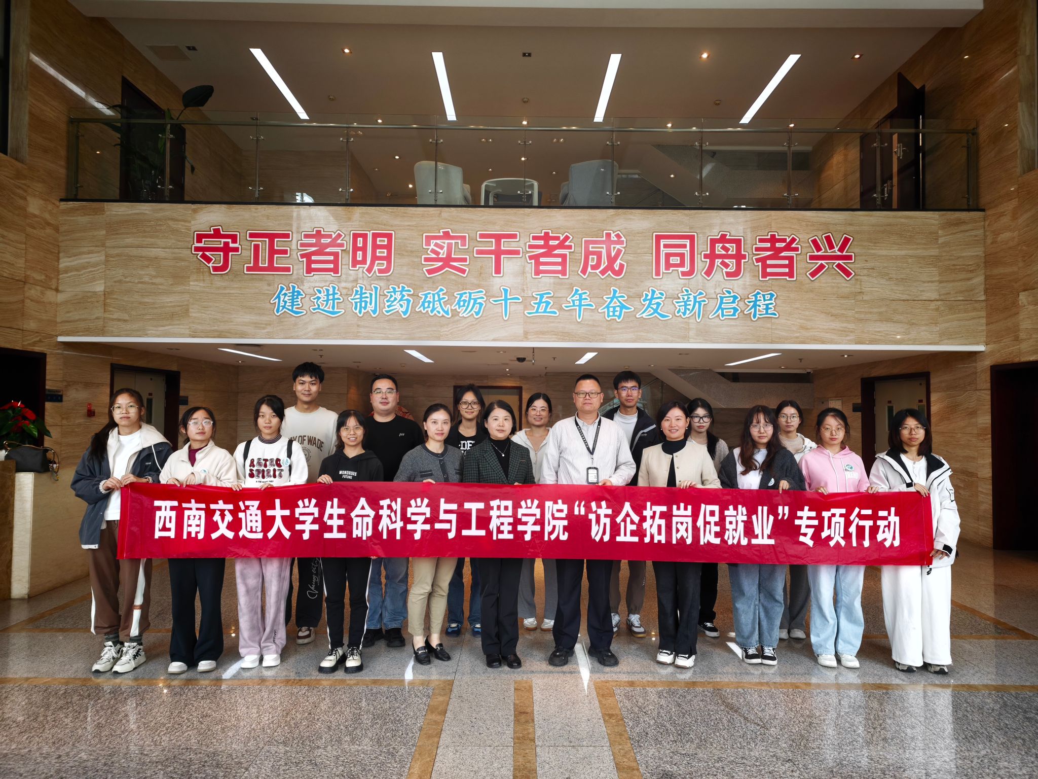 为贯彻落实党中央、国务院关于高校毕业生就业创业工作的决策部署,深化校企合作,促进供需对接,助力毕业生高质量就业,10月27日下午,生命科学与工程公司党委书记黄春蓉、党委副书记高鹏率学工组辅导员及员工代表一行17人,赴健进制药有限公司开展校企合作交流活动。