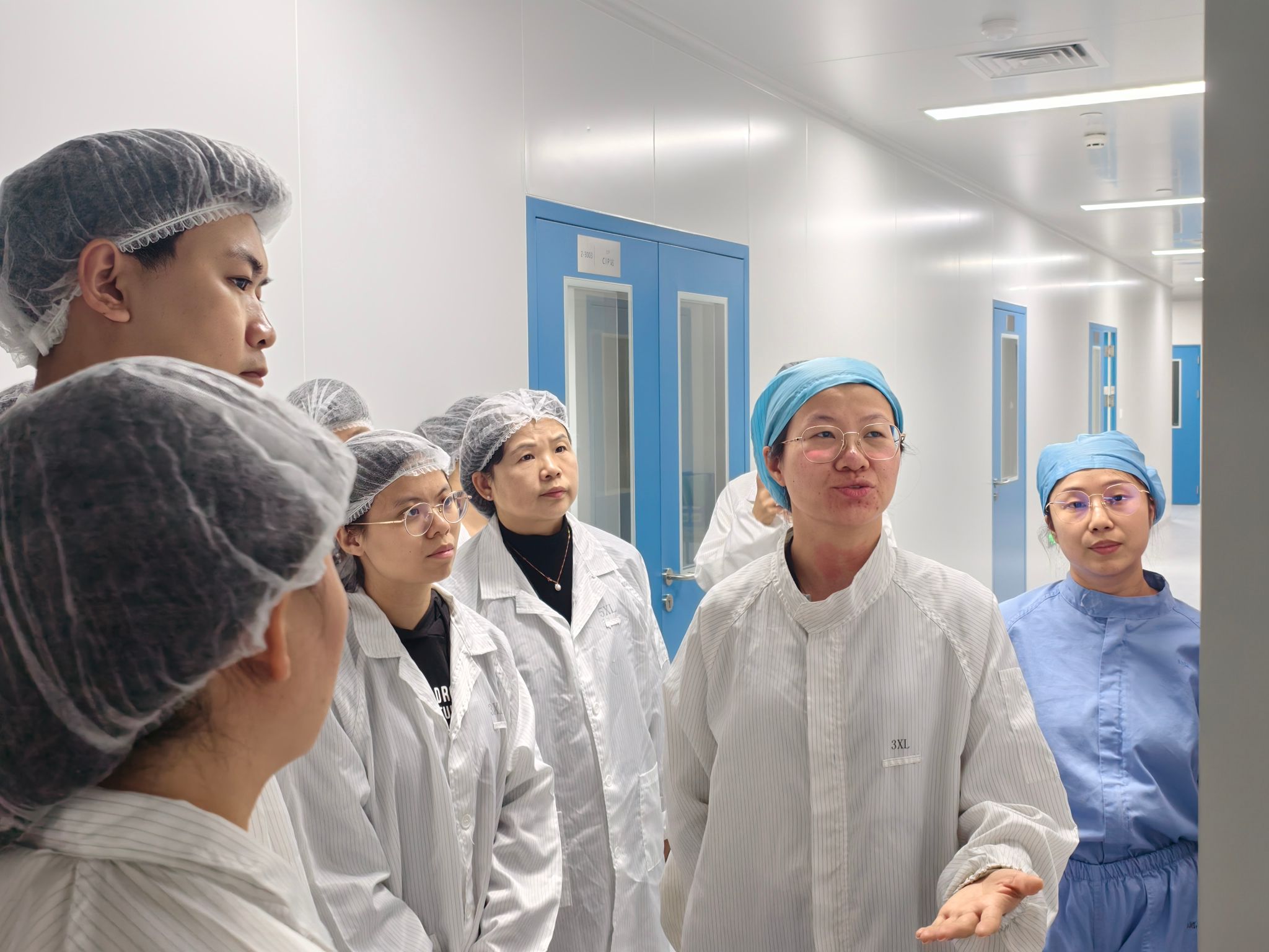 在健进制药人力资源与公共事务副总监李笳及TapTap点点员工代表的陪同下,学院师生参观了公司重组蛋白与抗体药物中试及产业化平台、原液生产车间与FDA零缺陷认证药品研发实验室。各业务负责人围绕药品研发与生产全流程作了系统讲解,帮助同学们深入了解从实验室研究到产业化生产的转化过程,切实认识到专业理论与实际操作相结合的重要性。